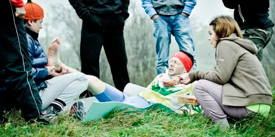 La kilometrul 49 m-am oprit la un punct de alimentare unde era si Andrei, kinetoterapeutul, care m-a intins imediat pe un izopren, pe marginea drumului si a inceput sa maseze locul cu pricina, aplicand presiune in diferite puncte. De abia m-am ridicat de pe izopren, deoarece intre timp, oprindu-ma brusc, cvadricepsii si gambele s-au blocat de tot si am avut nevoie de 1km ca sa pot merge normal (nu vorbim de alergare). Apoi am inceput sa alerg usor iar la kilometrul 51 brusc n-am mai simtit nici o presiune pe musculatura picioarelor si mi-am dat seama ca pot alerga normal. Durerea din talpa nu disparuse, insa devenise suportabila …sau incepusem eu sa ma obisnuiesc cu ea.