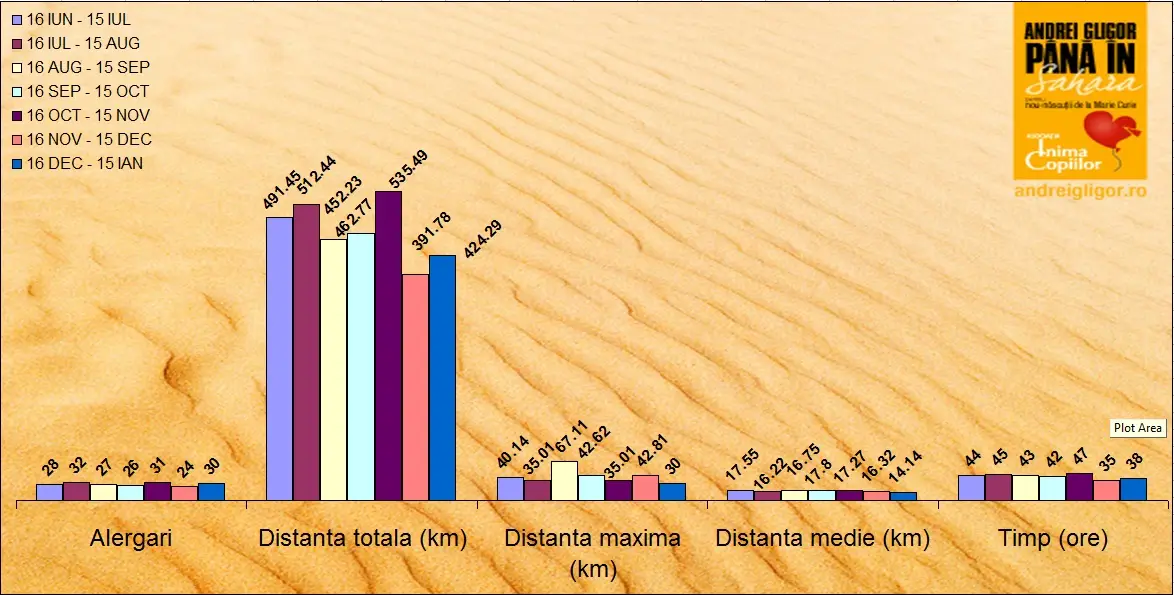 Pe 15 ianuarie am incheiat cea de-a saptea luna de alergari aproape zilnice din drumul meu spre Sahara. Starea de disconfort, oboseala este inlocuita treptat de cea de euforie, pentru ca mai este atat de putin si pentru ca ma vad intrat deja in linie dreapta! Ma uit in urma la cei 3300 de kilometri alergati si nu-mi vine