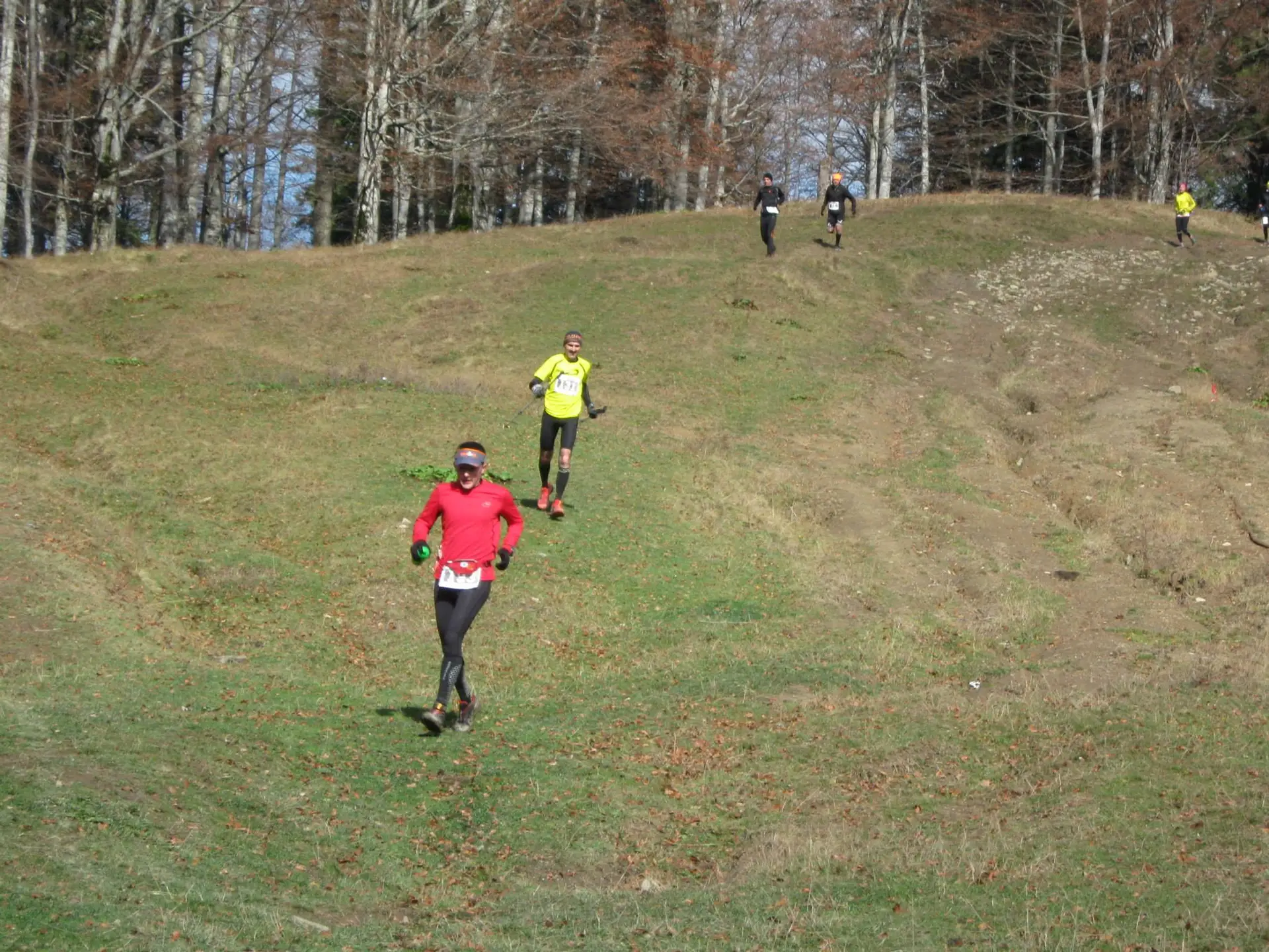 Asadar …3,2,1 START! Prima portiune de 2 km a fost o combinatie dintre plat si o usoara coborare si toata lumea se grabea parca sa prinda trenul 😀 Apoi ne-am linistit imediat cand a inceput prima urcare prin padure: 3 kilometri si 600 m diferenta de nivel. Incet, incet,zarva provocata de entuziasmul concurentilor a fost inlocuita de liniste, de gafaieli, de injuraturi si rugaminti la divinitate ca acea portiune sa se termine cat mai repede. Temperatura scadea pe masura ce urcam iar vantul incepuse sa bata cu putere printe copacii ale caror frunze formasera pe jos un covor multicolor.