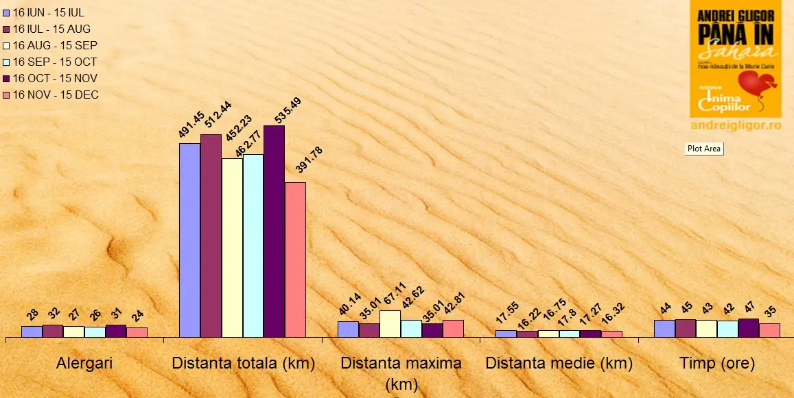 Trebuie sa marturisesc de la bun inceput ca luna aceasta a fost de departe cea mai grea de pana acum. Stiu, asa am zis si luna trecuta si probabil ca o sa mai zic si peste o luna sau doua. Pardon! Peste doua luni, la sfarsitul lui februarie, la intoarcerea din Sahara, voi fi probabil mult prea fericit si implinit ca voi fi dus acest proiect atat de drag la capat, incat nu voi mai simti nici o apasare, durere, disconfort, oboseala, iar tot efortul celor 8 luni de alergare aproape continua mi se va parea un fleac.