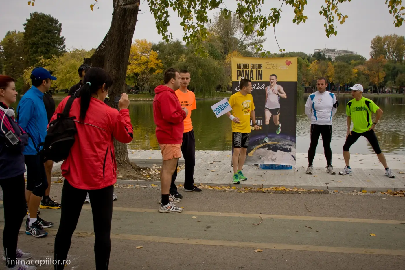 Mie, recunosc, ca mi-a fost extrem de greu sa accept, cu 2 zile inainte de a face cei 2000 de kilometri, ca trebuie sa ma opresc. Cu o dimineata inainte, am dus o lupta apriga cu mine, daca sa ma mai dau jos din pat si sa alerg cei 15 km sau nu. Dar ceea ce m-a dus din nou pe aleile parcului IOR, ati fost voi dragilor, cei cu care stiam ca ma voi intalni duminica, 21 octombrie in parc sa trecem impreuna prin dreptul bornei kilometrice 2000. Nu vroiam sa va dezamagesc si va multumesc mult ca ati vrut sa fiti alaturi de mine. Psihic m-ati ajutat foarte mult, pentru ca am putut sa trec peste tentatia de a ma opri pentru cateva zile. Si ma bucur ca n-am facut-o! Desi mai ramasesera doar 3 kilometri de alergat si s-au terminat destul de repede, au fost 3 kilometri foarte intensi pentru mine. Au fost 3 kilometri alergati alaturi de voi, in care am uitat de oboseala, de intinderea de ligamente, de chinuitoarea rutina zilnica, de tentatia de a fi renuntat avuta cu 2 zile inainte, alegand in schimb sa ma gandesc la un singur lucru: pasiunea