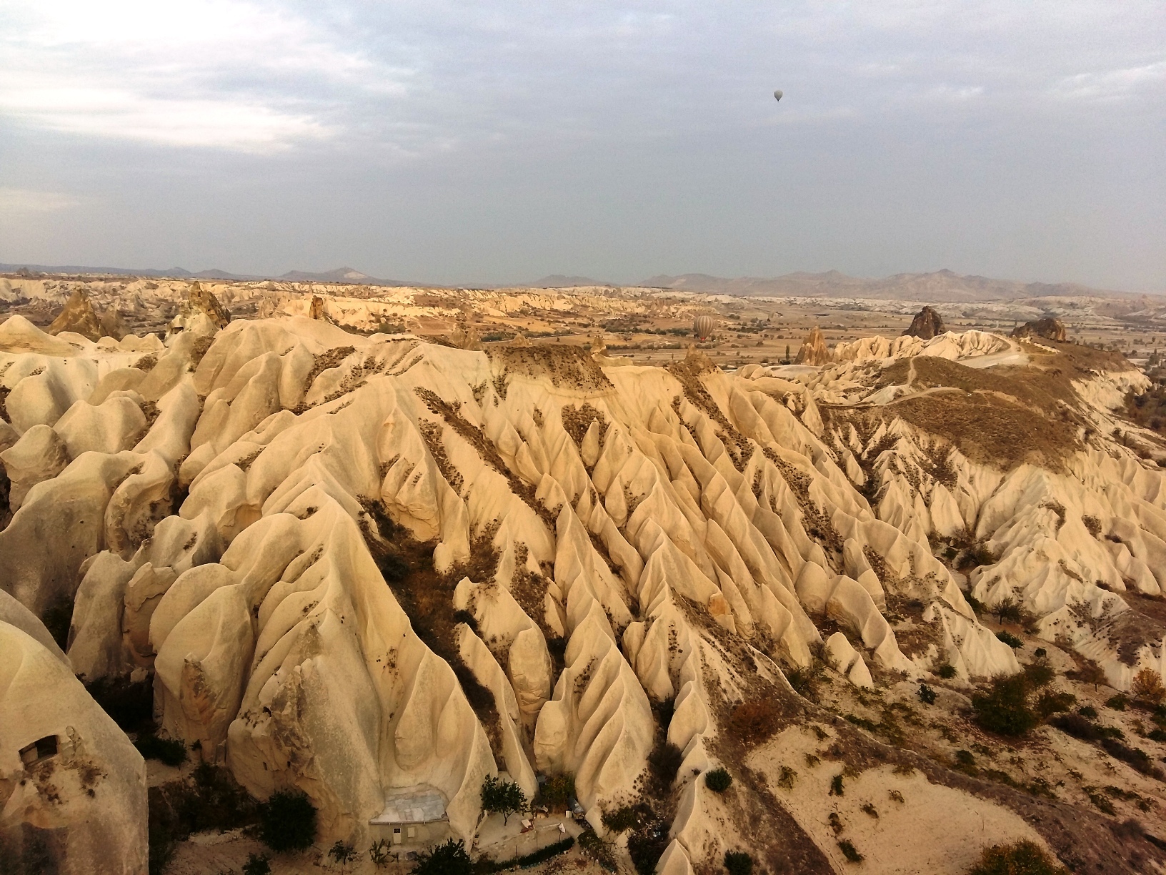 Incepuse sa se lumineze iar razele inca timide ale soarelui care cadeau pe stancile si potecile Cappadociei, te transportau parca pe alta planeta. Era momentul din zi cand o multime de baloane cu aer cald pline de turisti se ridicau in vazduh iar noi alergam ca furnicutele printre turnuletele atat de frumos sculptate de natura. Peisajul era coplesitor si mai ca imi parea rau sa trec pe langa toate minunatiile acelea in fuga.