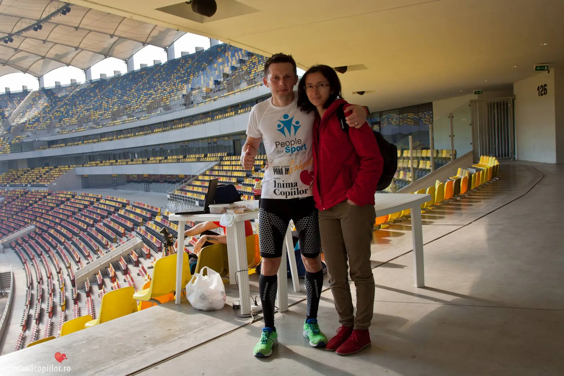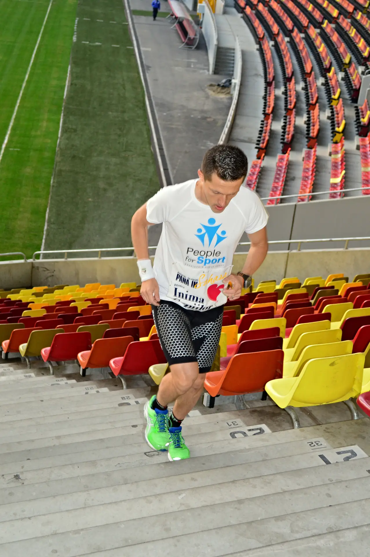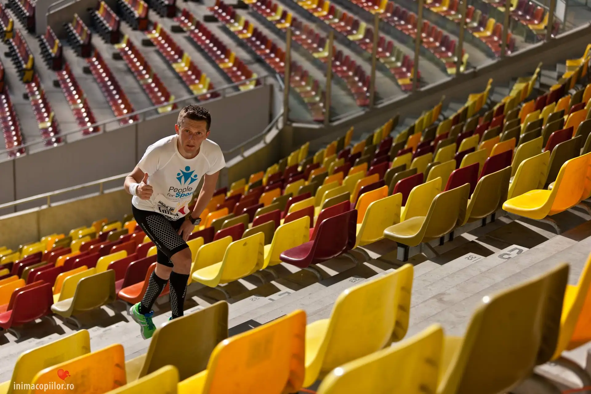 Sambata aceasta am alergat din nou, de data asta pe verticala, in cadrul evenimentului Vertical Challenge – Steps for Life Edition. Locatia aleasa de organizatorii evenimentului (People for Sport, Smart Atletic, Pastel si RoClub Maraton) a fost una pe masura, National Arena. Regulile jocului erau simple. Se alerga pe trepte, fiecare atat cat putea. Pentru Gabriel Solomon a fost un test inainte de evenimentul de la anul, in care va incerca sa doboare recordul mondial la alergat 24 de ore pe scari. Pentru noi, ceilalti 6 care am participat la eveniment, a fost poate un test de anduranta, de testare a limitelor fizice si mentale, o provocare personala. Sunt convins ca fiecare a avut motivatia lui, insa pe toti ne-a unit un singur lucru. Toti am alergat pentru Inima Copiilor, pentru a aduce din nou in ochii opiniei publice proiectul “Andrei Gligor pana in Sahara” si pentru ca ne dorim din tot sufletul sa oferim o sansa la o viata normala nou nascutilor cu probleme de la Marie Curie.
