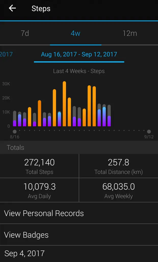 Numarul de pasi sau de etaje urcate si coborate, le stabileste zilnic in functie de nivelul de fitness pe care il ai la momentul respectiv. Dureaza cam o saptamana pentru ca ceasul sa-ti invete obiceiurile zilnice iar apoi isi stabileste un algoritm prin care creste sau scade parametrii obiectivului. Spre exemplu prima data cand l-am pus la mana mi-a stabilit un minim de 7500 de pasi pe zi, urmand ca a doua zi, sa ajusteze cifra in functie de ce facusem in ziua precedenta, ajungand in scurt timp sa am o medie de 12-20.000 de pasi pe zi.