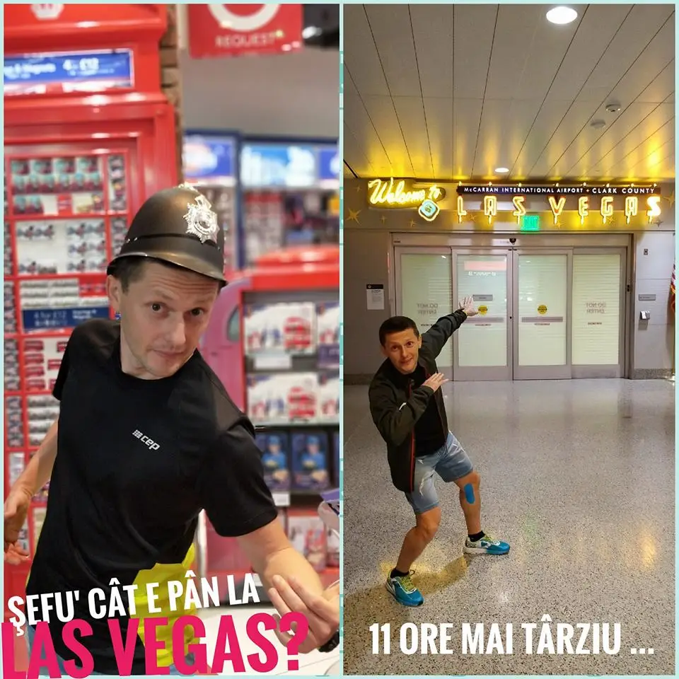 Chiar dacă pe alocuri am reușit să ațipesc câteva ore, zborul către Las Vegas a fost lung și plictisitor. După 10 ore și 40 de minute aterizam pe aeroportul McCarran și răsuflam ușurat când am văzut că a ajuns și bagajul de cală o dată cu mine. Motivul principal pentru care am stat ca pe ace era faptul că în bagajul de cală aveam toată mâncarea pentru cursă (geluri, pudre izotonice, mâncare deshidratată), articole pe care nu le puteam lua în bagajul de mână. Iar dacă se întâmpla ca bagajul să se rătăcească sau să ajungă după câteva zile, nu prea mai puteam să iau startul. E un risc pe care mi-l asum de fiecare dată când plec într-o astfel de aventură.