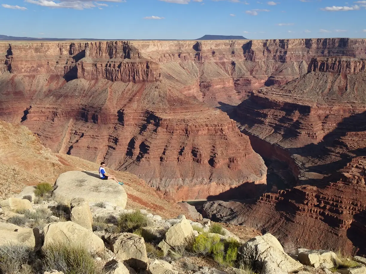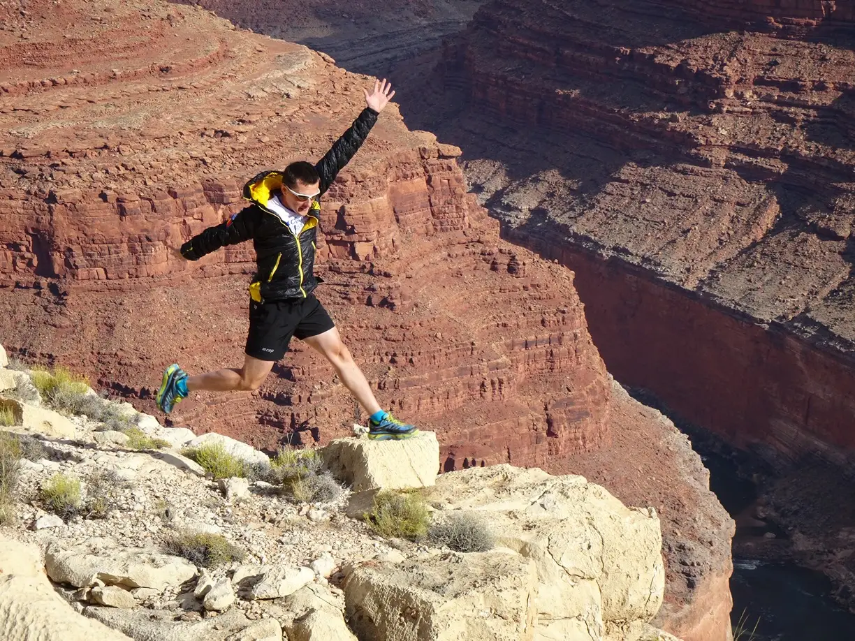 Am ieșit din cort, am luat camera foto și după doar 100m de mers pur și simplu am amuțit. Stăteam pe marginea Marelui Canion și nu îmi venea să cred că sunt acolo, că este real și că toate astea mi se întâmplă mie. Peisajul era pur și simplu copleșitor și nu știu dacă vreo poză sau vreun film pe care l-aș fi făcut ar fi putut să redea sentimentul pe care îl aveai când vedeai asta pentru prima dată. Am petrecut minute în șir admirând ceea ce este socotit pe bună dreptate una dintre cele 7 minuni ale lumii. Mă simțeam mic și neînsemnat în fața măreției naturii și totodată norocos că mă aflam acolo și că aveam să alerg o săptămână într-un loc de vis.