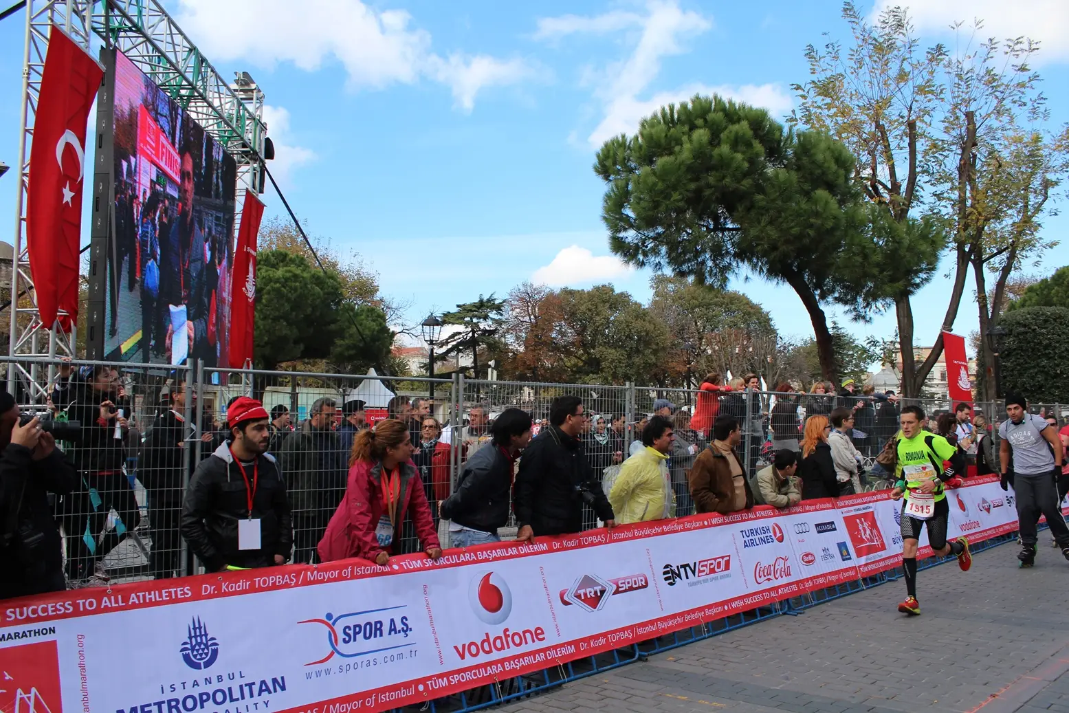 Duminica m-am trezit destul de devreme pentru ca la ora 7:00 trebuia sa fiu la punctul de intalnire de unde autobuzele duceau concurentii la linia de start, in partea asiatica a orasului. Am avut marea bucurie sa ma intalnesc acolo cu prieteni din RoClub Maraton si am format imediat un grup compact, facandu-ne loc prin marea de oameni si incercand sa ne pozitionam cat mai in fata la linia de start. A urmat intonarea imnului Turciei si cateva cuvinte din partea primarului rostite de la tribuna oficiala, iar apoi sunetul pistolului care marca startul celei de a 35-a editii a Istanbul Marathon.