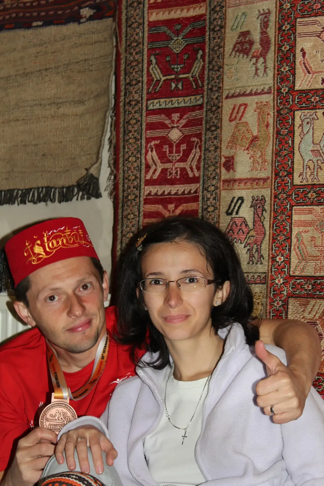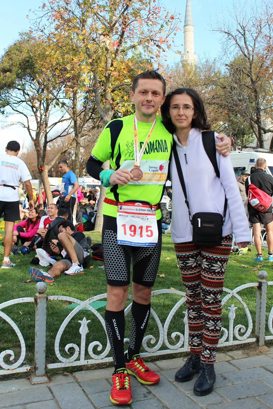 Mi-am dorit tare mult sa alerg acest maraton. Numai gandul ca voi alerga din Asia in Europa ma facea sa numar zilele pana la startul competitiei. Asadar dupa un drum de 10 ore cu masina, soseam la Istanbul plin de energie pozitiva si curios ca un copil care isi deschide pentru prima oara cadoul de Craciun. Ador aceasta senzatie pe care o simt inainte de fiecare cursa noua, cand nu stii ce te asteapta, cand curiozitatea nu-ti da pace si incerci sa iti imaginezi cursa din povestirile, pozele si filmuletele prietenilor care au mai fost. De data aceasta am beneficiat si de o echipa de suport numeroasa. Alaturi de sotia mea (care nu lipseste de la nici o cursa) i-am avut alaturi si pe nasii nostrii care mi-au facut o mare surpriza si au adus-o si pe mama. Spun au adus-o pentru ca habar n-am avut pana cand am ajuns la vama la bulgari ca mama va veni cu noi. Nasa s-a ocupat de toate detaliile si a reusit sa tina totul secret, pana cand ne-am dat jos din masini la vama si am vazut-o pe mama coborand din masina lor! 🙂 Pentru o secunda nu intelegeam ce se intampla, pentru ca ne luasem la revedere la telefon cu o seara inainte. Cat eu incercam sa ma dezmeticesc, toti ceilalti radeau si savurau din plin reactia de uimire de pe chipul meu. Trebuie sa fi aratat tare caraghios 😀