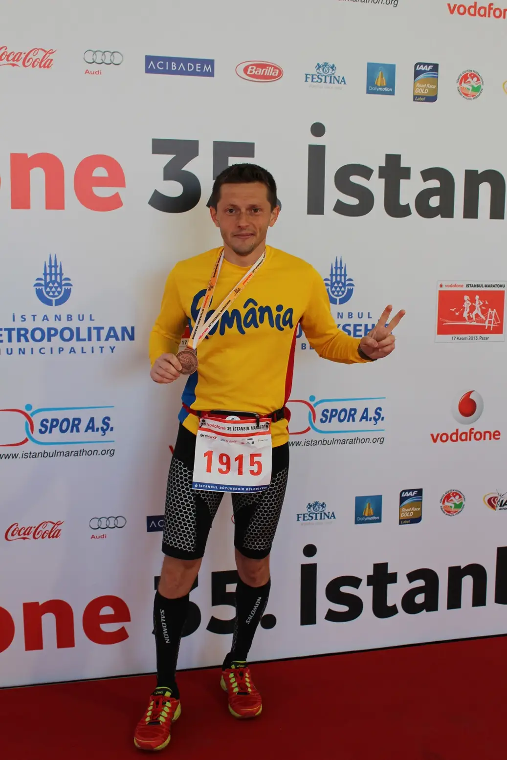 Incepusem sa-mi propun tinte mici, cum ar fi urmatoarea intersectie, urmatorul punct de hidratare si toate resursele sa le folosesc pentru a ajunge pana acolo, apoi imi fixam urmatoarea tinta. Kilometrul 35 m-a gasit intrebandu-ma la modul cel mai sincer daca sa ma opresc. Vedeam oameni pe langa mine care se oprisera din alergat si mergeau si era atat de tentant sa fac si eu asta! Am luat si ultimul gel de la Isostar pe care il aveam sperand ca-mi va da energia necesara care sa ma duca pana la finish, am strans din dinti si am continuat sa alerg mai departe. Un alergator turc, trecut bine de 40 de ani ajunge in dreptul meu si-mi zice “Bravo Romania! Hai Romania!” Nici el