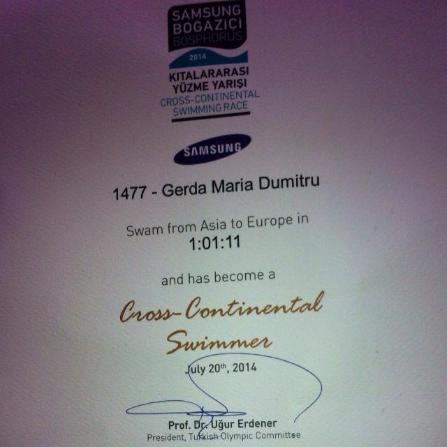 Anul trecut, pe vremea aceasta, antrenoarea mea de inot, Gerda, lua startul intr-o cursa de inot intre Asia si Europa, Bosphorus Cross Continental Swimming Race de 6,5km, o cursa la care mai luase parte in trecut de trei ori si la care a fost pe podium. Mie mi se parea absolut SF la vremea aceea sa inoti 6,5km intr-o ora sau chiar mai putin ca sa nu mai spun de valuri, curenti puternici, alte mii de concurenti care inoata pe langa tine si care incearca sa gaseasca trasa ideala sau curentul potrivit pentru a iesi din apa intr-un timp cat mai scurt. Peste doua zile se va da startul editiei 2015 si desi Gerda nu va fi prezenta la start anul acesta, a acceptat sa ne povesteasca ce inseamna cursa aceasta pentru ea, cum a fost in 2014 si care sunt planurile de viitor.