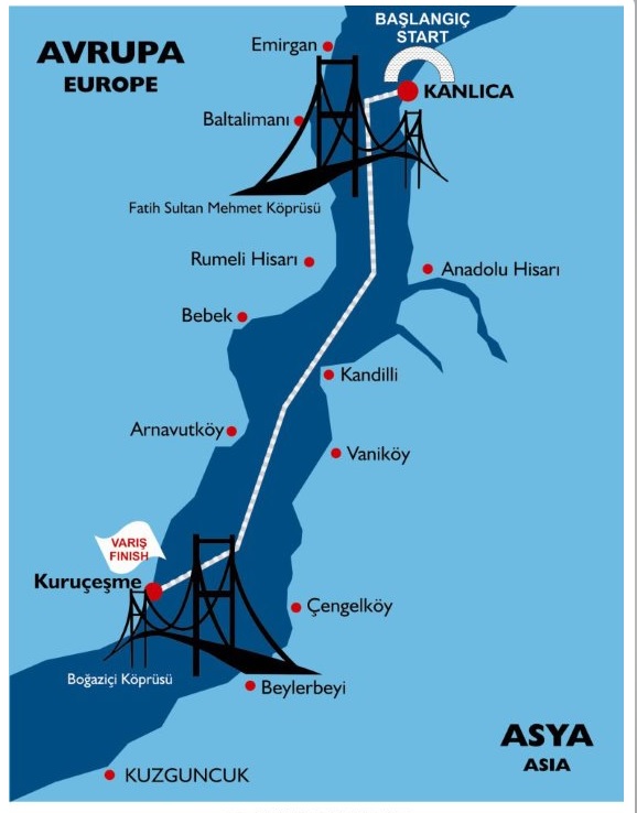 Cu o zi inainte de concurs organizatorii fac recunoasterea traseului, moment in care toti sportivii sunt urcati pe feriboturi si plimbati intr-o croaziera pe Bosfor avand la dispozitie toate informatiile necesare pentru concurs: locul de start (de pe malul asiatic), punctele de reper care sunt foarte importante la inotul in ape deschise, indicatii despre zonele dificile dar si cum sa reactionezi in situatii de urgenta.