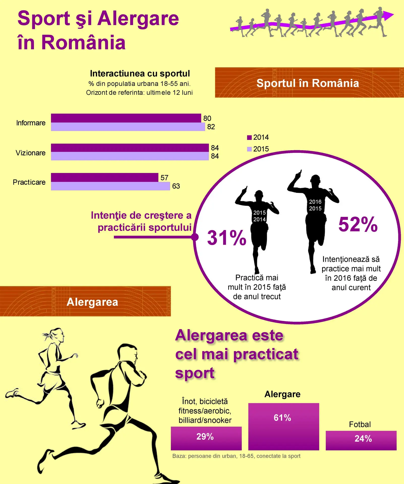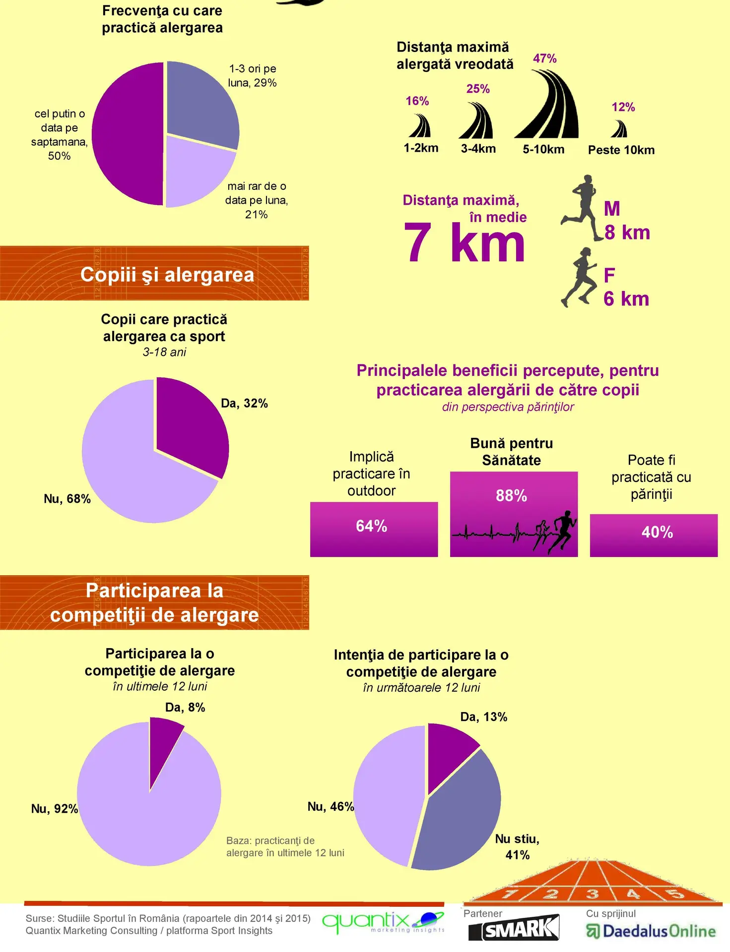 Spuneam de oameni care fac miscare si imbratiseaza un stil de viata sanatos. Intr-adevar, suntem putini (1%) raportat la populatia Bucurestiului, insa acest numar creste de la an la an, iar cifrele unui sondaj de piata realizat de Quantix cu sprijinul Daedalus nu pot decat sa ne bucure in acest sens. Eu unul sunt optimist ca in cativa ani Romania va avea in ADN cultul pentru sport dar si respectul pentru cei care il practica din partea celor care nu fac neaparat acest lucru.