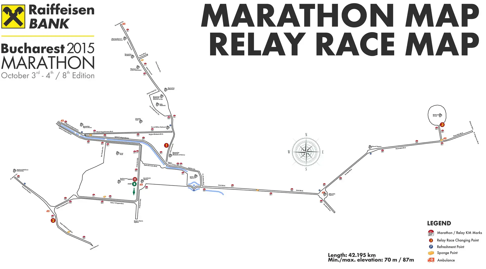 START Piata Constitutiei – Bd. Libertăţii – Piaţa Francofoniei – dreapta, pe Calea 13 Septembrie – Piaţa Arsenalului – dreapta, pe Str. Izvor – stânga, pe Str. B.P. Hasdeu – dreapta, pe Splaiul Independenţei – dreapta, pe Bd. Libertăţii – stânga, pe Bd. Naţiunile Unite – dreapta, pe Splaiul Independenţei – Piaţa Unirii – dreapta, către Bd. Unirii – stânga, pe lângă Fântâna Mare – stânga, prin faţa Unirea Shopping Center – stânga, pe Str. Halelor – Splaiul Independenţei – dreapta, pe Calea Victoriei – dreapta, pe Bd. Dacia, pâna la intersectia cu Str. H. Coandă – intoarcere catre Calea Victoriei – dreapta, catre Piata Victoriei – la intersecţia cu Str. Sevastopol, întoarcere pe Calea Victoriei – dreapta, pe Str. Ştirbei Vodă – stânga, pe Str. Ion Câmpineanu – dreapta, pe Calea Victoriei – dreapta, pe Splaiul Independenţei – Piaţa Operei – dreapta, pe Bd. Regina Elisabeta – la Cercul Militar Naţional, întoarcere pe Bd. Regina Elisabeta – Piaţa Operei – Splaiul Independenţei – Pod Eroilor – trecere pe celălalt sens al Splaiului Independenţei – Pod Izvor – dreapta, pe Bd. Libertăţii – dreapta, pe Calea 13 Septembrie – Piaţa Arsenalului – stânga, către Şos. Panduri – dreapta, pe Şos. Panduri – la intersecţia cu Str. Prof. Dr. Francisc Iosif Rainer, întoarcere pe celălalt sens al Şos. Panduri – la intersecţia cu Calea 13 Septembrie, continuare pe Bd. Tudor Vladimirescu – la intersecţia cu Calea Rahovei, întoarcere pe celălalt sens al Bd. Tudor Vladimirescu – dreapta pe Calea 13 Septembrie – Piaţa Francofoniei – dreapta pe Bd. Libertăţii – la Piaţa Regina Maria, întoarcere pe Bd. Libertăţii – Piaţa Constituţiei – dreapta, pe Bd. Unirii – Piaţa Unirii – Piaţa Alba Iulia – dreapta, pe Bd. Burebista – la intersecţia cu Str. Popa Stoica Fărcaş, întoarcere pe Bd. Burebista – Piaţa Alba Iulia – dreapta, pe Bd. Decebal – Piaţa Muncii – Bd. Basarabia – la intersecţia cu Bd. Chişinău, întoarcere pe Bd. Basarabia – dreapta, în parcul Arenei Naţionale – tur exterior Arena Naţională – la ieşirea din parc, dreapta, pe Bd. Basarabia – Piaţa Alba Iulia – Piaţa Unirii – dreapta, prin faţa Unirea Shopping Center – stânga, pe Str. Halelor – Splaiul Independenţei, până la Piaţa Operei – la Piaţa Operei, întoarcere pe celălalt sens al Splaiului Independenţei – dreapta, pe Bd. Libertăţii – SOSIRE în Piaţa Constituţiei.