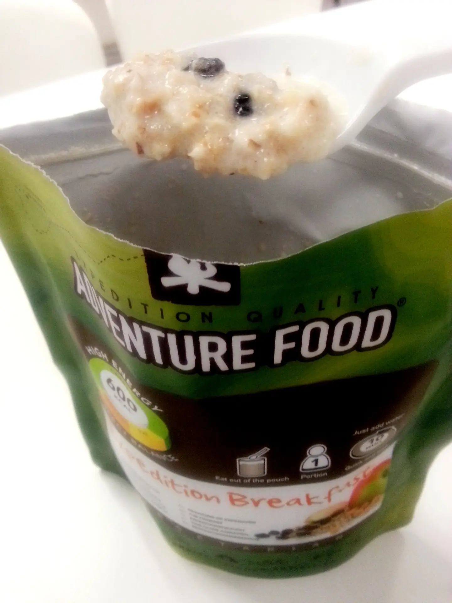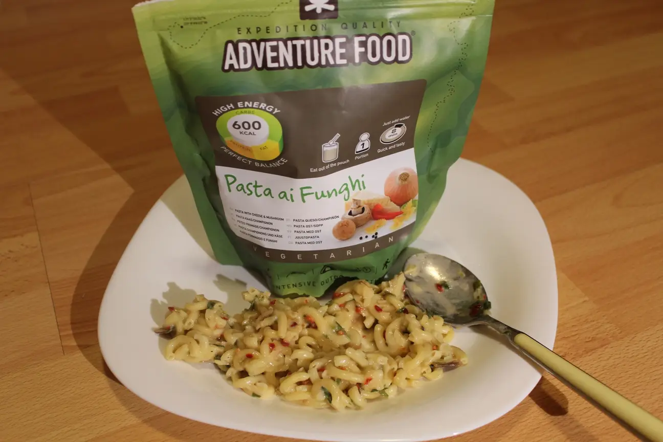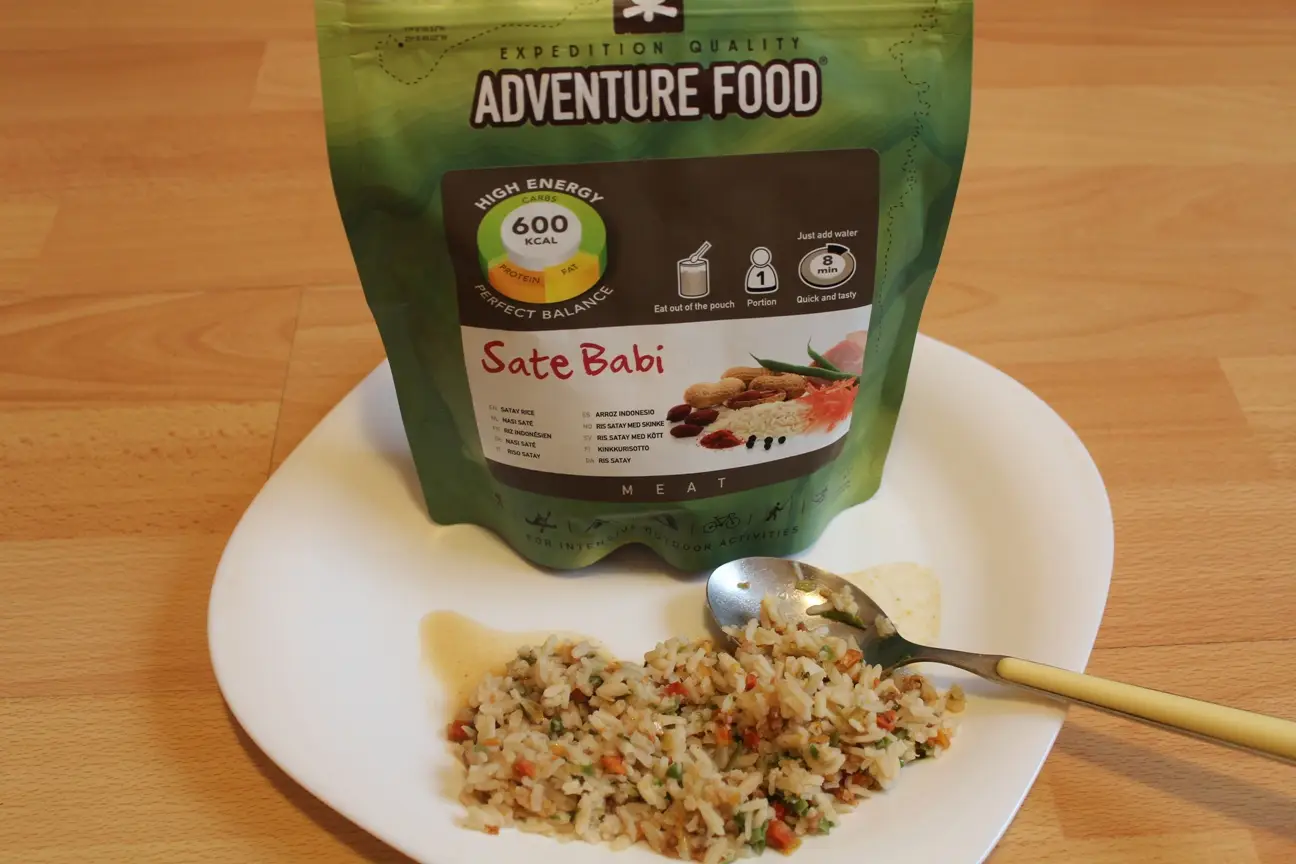 Am fost insa placut surprins sa descopar Adventure Food, o companie olandeza, care in ultimii ani s-a impus pe piata de profil, mancarea lor fiind una dinte cele mai apreciate din intreaga lume, fiind produsa in intregime din culturi bio si fara conservanti. Alimentele sunt deshidratate, micsorandu-li-se volumul si greutatea de pana la 4.5 ori, insa pastrand aceleasi calitati nutritive. In principiu vine sub forma de plicuri, sigilate in vid. Dupa deschidere, se toarna apa fiarta peste continut, se amesteca, se inchide plicul si se lasa intre 8 si 10 minute. Apoi se deschide si se poate consuma direct din plic. Rasfoind meniul n-am putut sa nu ma amuz si eram inca neincrezator: Chicken Curry, Beef Goulash, Mince Beef Hotpot, Pasta Bolognese, Pasta Cheese with Ham, Satay Rice, Curry with Fruit & Rice, Pasta with Cheese & Mushroom si alte asemenea minuni.