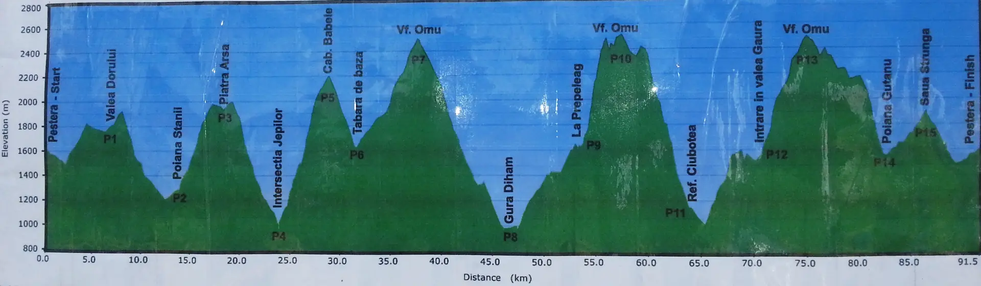 Traseul turei lungi presupunea trecerea prin 15 puncte de verificare, unde arbitrii ne stampilau foaia de concurs, facand dovada trecerii noastre prin acel punct al traseului. Fiind un concurs pe echipe, era absolut obligatoriu ca ambii membrii ai echipei sa treaca prin punctele de control in acelasi timp. Se pleca impreuna de la start, se ajungea impreuna la finish.