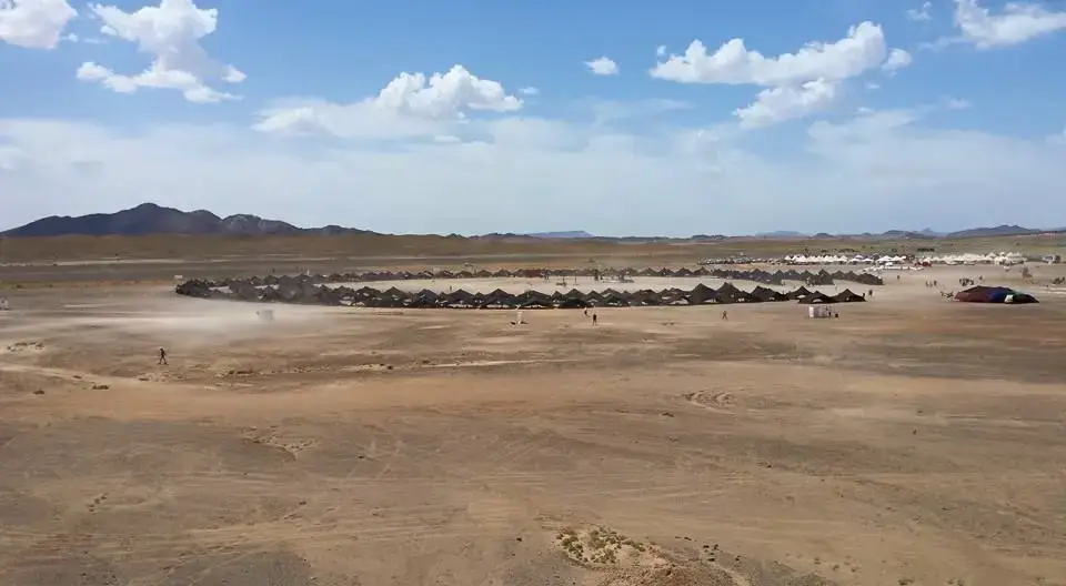 Tabara de baza era compusa din peste 180 de corturi de 8 persoane care gazduiau concurentii si alaturi de ele, la o oarecare distanta se aflatu corturile organizatorilor si cortul medical. Iar in jur, cat vedeai cu ochii …desert! Impresionanta desfasurare de forte te coplesea pur si simplu.