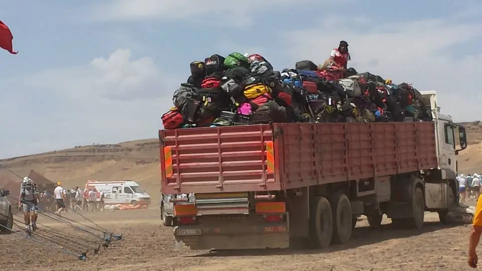 Trebuia sa ramanem doar cu rucsacul de cursa care sa contina tot ce aveam nevoie traiului in desert pentru urmatoarea saptamana. Desi impachetasem si despachetasem de cateva ori acasa, incercand sa reduc greutatea rucsacului fara insa sa ma privez de articolele absolut esentiale, acum nu stiu cum se facea ca rucsacul devenise parca prea mic si nu mai incapea in el ce aveam trecut pe lista. Am scos tot din el si cu calm am reinceput asezarea echipamentului, mancarii, gelurilor, batoanelor energizante, medicamentelor dar si a articolelor obligatorii, fara de care nu erai lasat sa pornesti in cursa: lanterna frontala cu baterii de schimb (pentru etapa lunga), folie de supravietuire, pompa antivenin, cutit cu lama metalica, bricheta (sau amnar), busola, fluier, sac de dormit, etc. Intr-un final am reusit sa le inghesui pe toate si cu rucsacul in spate si geanta cu celelalte bagaje in mana am pornit spre cortul organizatorilor cu inima stransa. Imi verificam in minte daca mi-am oprit tot ce am nevoie pentru ca era ultimul moment in care aveam acces la bagaje. Odata predat bagajul, te reintalneai cu el dupa o saptamana, in Ouarzazate. Cea mai importanta era mancarea liofilizata, gelurile si prafurile izotonice pe care deja le impartisem in pungi pe zile, asadar nu eram in pericol sa uit ceva.