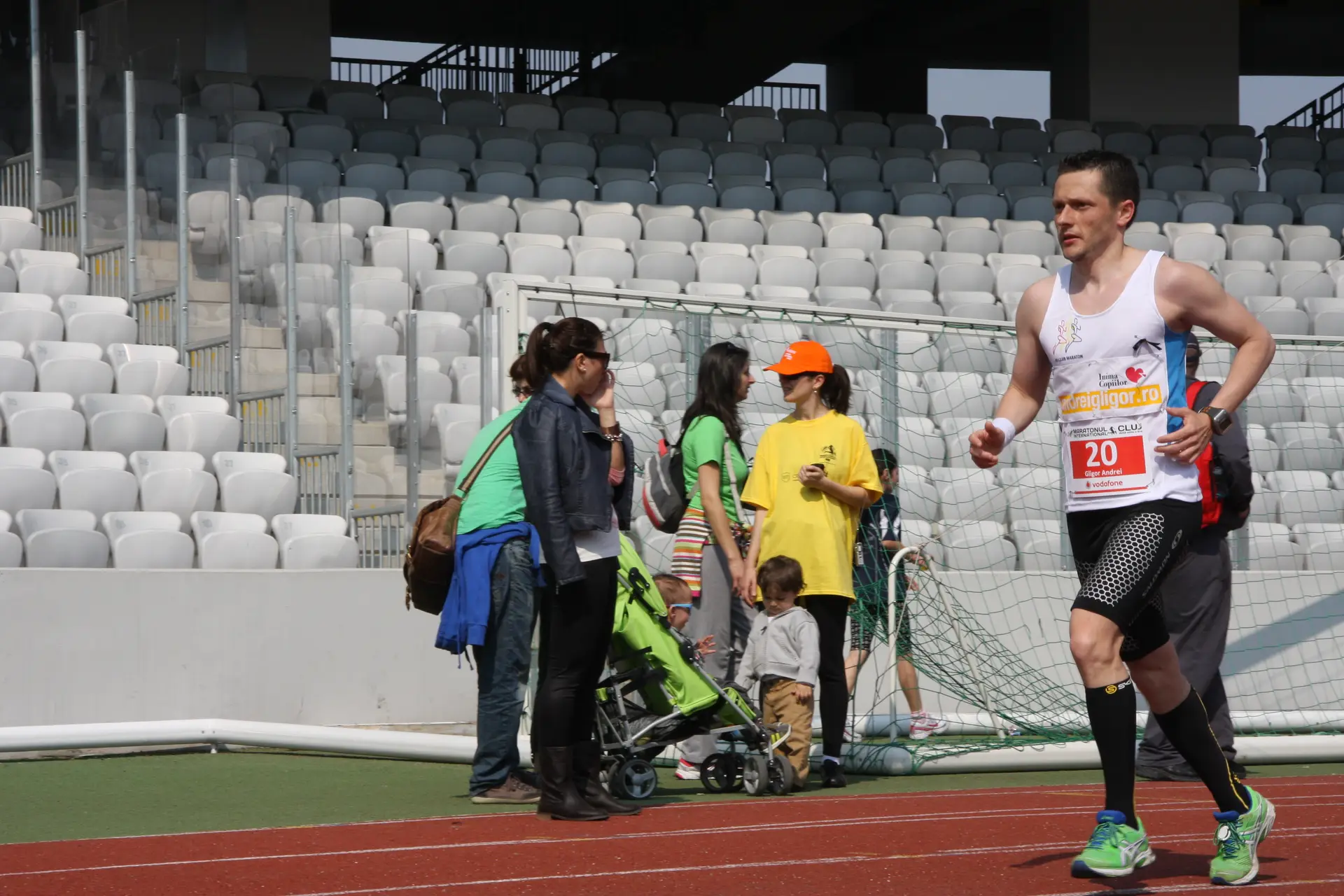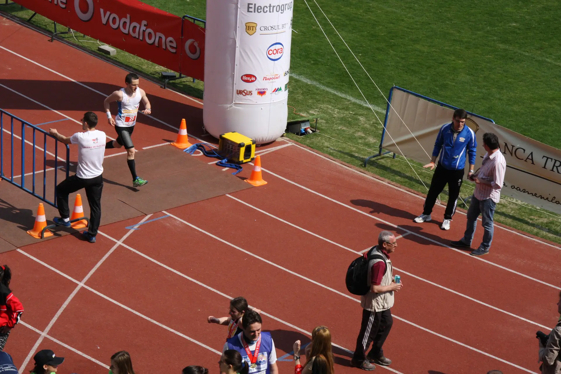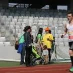 Nu-mi venea sa cred ca la kilometrul 35-37, unde de obicei incepea sa apara oboseala, de data asta ma simteam excelent. Ultimul punct de hidratare, inainte cu 2 km de intrarea in stadion m-a gasit intr-o stare de euforie generala. Ma uitam la ceas si parca nu imi venea sa cred: 3h 25m! Incercam sa-mi potolesc entuziasmul si sa nu ma gandesc inca la linia de finish. O patisem si la Roma cu un an in urma, cand cu numai 50 m inainte de sosire, cand ceasul arata 3h45 mi s-au blocat ambele gambe si nu am mai putut continua, pierzand cateva minute bune, pana sa pot sa ma misc din nou. Stiam ca maratonul este o cursa care nu trebuie subestimata, in care se pot intampla multe, chiar si cu cativa metri inainte de final. Asa incat am incercat sa-mi potolesc entuziasmul si sa incerc sa mentin ritmul constant de 12km/h. Ultima curba la stanga si in fata mea a aparut stadionul. Era ultima suta de metri si inima imi batea sa-mi sara din piept de emotie si bucurie. Prietenii strigau de pe marrgine si
