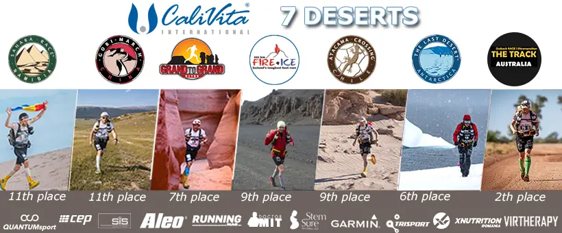 CaliVita 7 Deserts a fost un circuit de curse desfășurat în etape, cu distanțe cuprinse între 250km și 520km, în regim de autosuficiență, în unele dintre cele mai ostile regiuni ale globului din punct de vedere climatic. Fiecare cursă a însemnat temperaturi extreme, terenuri nemiloase, nopți nedormite și o luptă continuă cu limitele fizice și mentale.