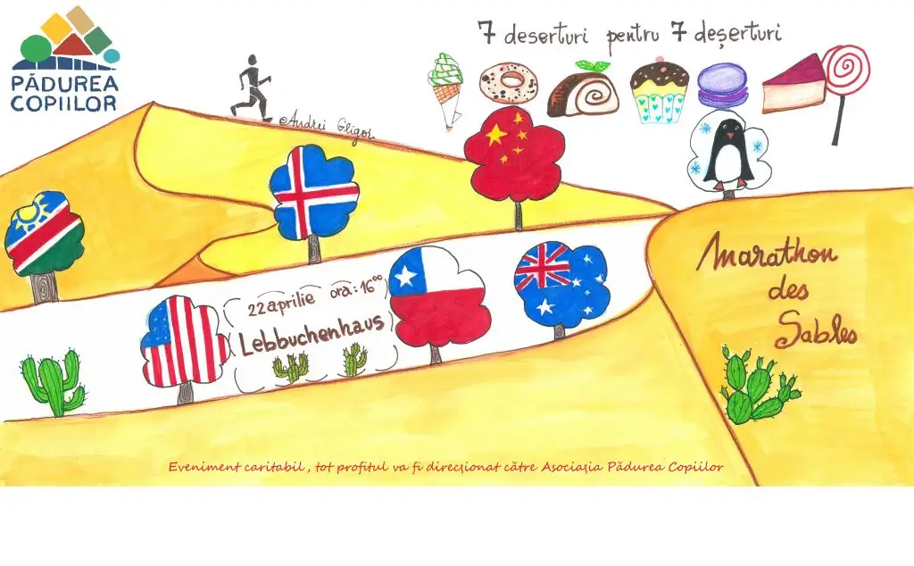 Iar daca doriti sa ne vedem fata in fata si sa povestim despre acest proiect in timp ce savuram cate o prajitura specifica fiecarei zone de pe Glob in care voi alerga, va invit sambata, pe 22 aprilie la evenimentul 7 deserturi pentru 7 deșerturi, la Lebbuchenhaus, Strada Sarmisegetuza, nr. 4 in zona Pietei Universitatii din Bucuresti, incepand cu ora 18:00 (https://www.facebook.com/events/389677744752695).