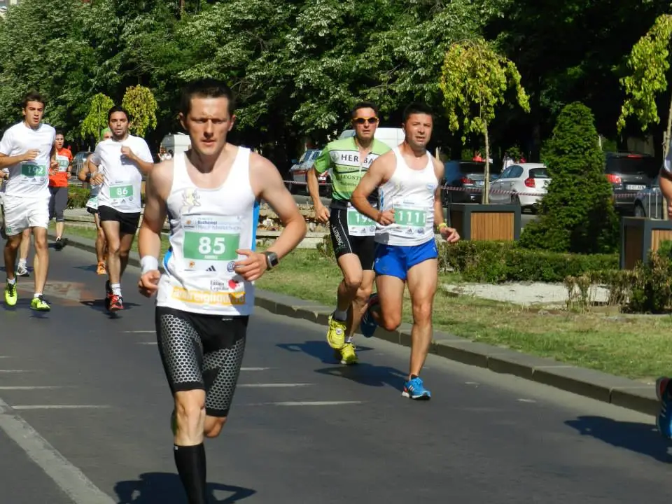 Inarmat cu 2 geluri de la High5 si hidratat bine (ba chiar prea bine) ma indrept spre culoarul de la linia de start. Desi stiam ca nu trebuia sa mai beau nimic inainte cu o ora de inceperea cursei, caldura de afara m-a determinat sa beau pana in ultima clipa. Fix inainte cu 10 minute de start aveam o dilema: sa ma asez cuminte la cozile de zeci de persoane de la toaletele ecologice si sa risc sa ratez startul sau sa plec in cursa cu acea senzatie de “catifelare” pe care o avem cu totii cand vrem la toaleta si n-avem unde? Am ales varianta 2 si m-am asezat frumos in plutonul de la start, exact in spatele alergatorilor de elita. 3,2,1…START! Atmosfera superba, toata lumea emotionata dar totodata concentrata, creierii incepusera sa fiarba de la temperatura de afara …deci se anunta o cursa de tinut minte.