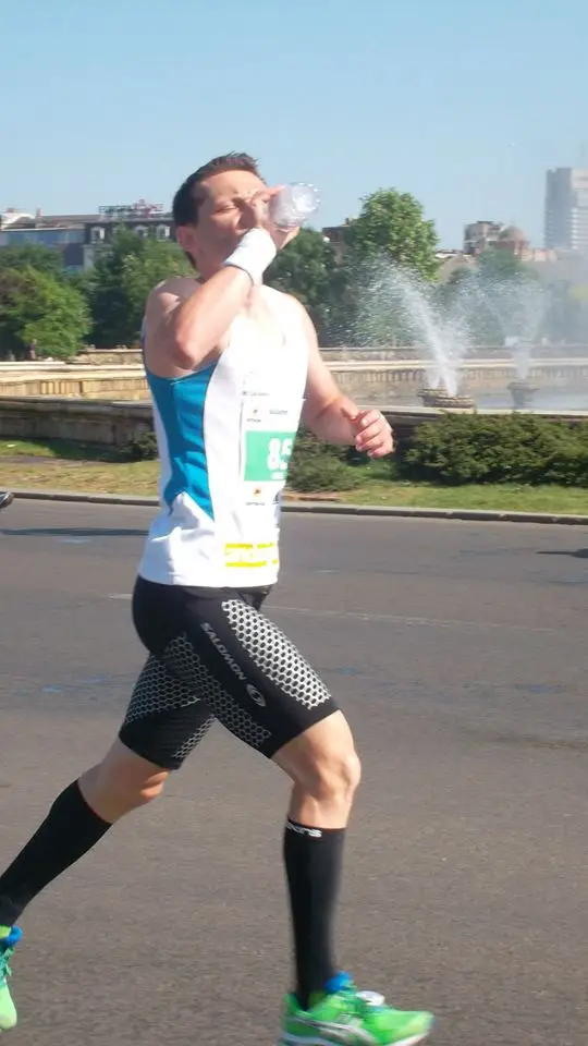 Cu totii cred ca stim ca in timpul alergarii, prin transpiratie se pierd saruri minerale si electroliti pe care nu ii punem la loc hidratandu-ne doar cu apa. De aceea, mai cu seama intr-o zi asa de calduroasa, aportul de bauturi izotonice si geluri este foarte important pentru organism. Nu de putine ori am vazut salvari venind de pe contrasens si deplasandu-se undeva in spatele meu, semn ca erau prieteni alergatori pe care caldura, deshidratarea si efortul ii doborase. Daca am invatat ceva in cei aproape 3 ani de cand alerg, este ca hidratarea in timpul antrenamentelor, dar mai ales in competitii nu trebuie ignorata. Oricat ne-am dori sa “sarim” peste un punct de hidratare crezand ca vom castiga in final cateva secunde, nu facem decat sa amanam punctul in care organismul da primele semne ca incepe sa cedeze si realizam in final, nu numai ca n-am castigat cateva