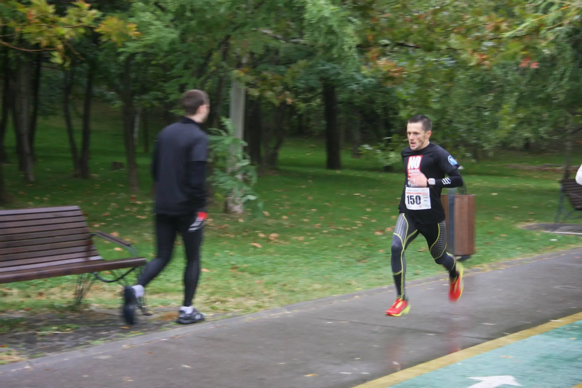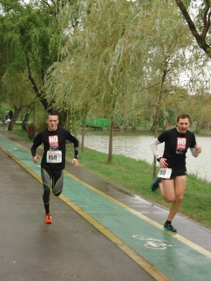 Am plecat ca din pusca, parca eram la proba de 100m. M-am uitat la ceas si am vazut 3m15s/km. Apoi m-am temperat un pic stiind ca nu voi putea tine ritmul asta pana la final. Primul kilometru l-am facut in 3m40s. Tot depaseam insa nu stiam daca erau concurenti din schimbul 4 sau din schimbul 3. Bogdan ma astepta dupa 1 kilometru asa cum promisese si a inceput sa alerge impreuna cu mine. Mi-a spus “Avem doua persoane de depasit ca sa prindem podiumul si o putem face! Este timp!”. Prima “tinta” era undeva la 400-500m distanta, o puteam vedea. Am accelerat un pic si am depasit. Ritmul mi se parea infernal. Nu mai alergasem distanta asta cu 3:40-3:50 pana atunci. In dreptul vestitei zone cu rate salbatice si broaste testoase din IOR zarim si cealalta persoana pe care trebuia s-o depasim. Nu era clar in cea mai buna forma si atunci mi-am dat seama ca daca voi reusi sa mentin ritmul pana la final nu aveam cum sa pierd.