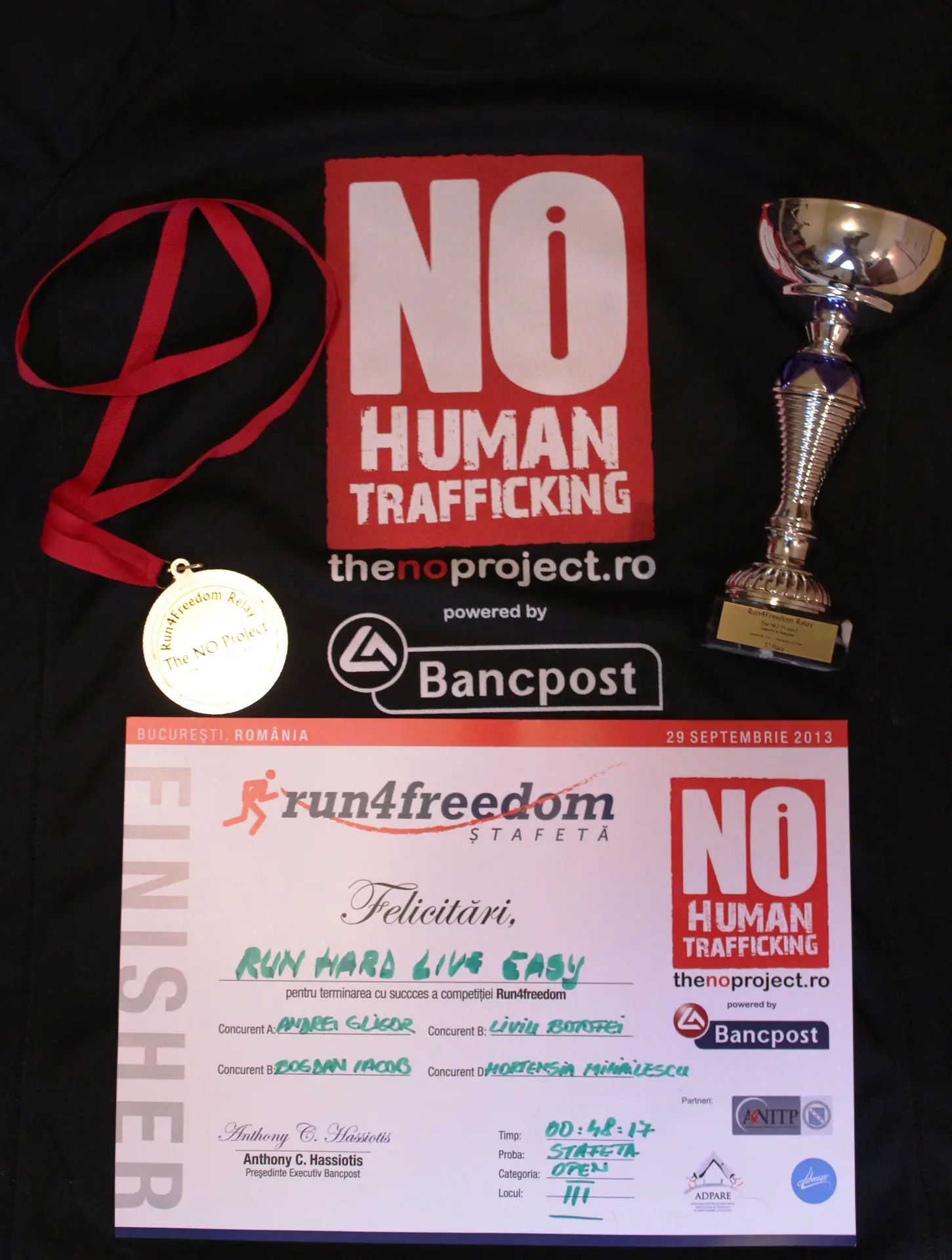 Stafeta RUN 4FREEDOM a fost parte a campaneiei The NO Project powered by Bancpost, avand ca parteneri Agenţia Naţională Împotriva Traficului de Persoane Asociatiile ADPARE si eLiberare. Evenimentul a fost organizat cu sprijinul Ro Club Maraton, People for Sport Romania si Elite Running.