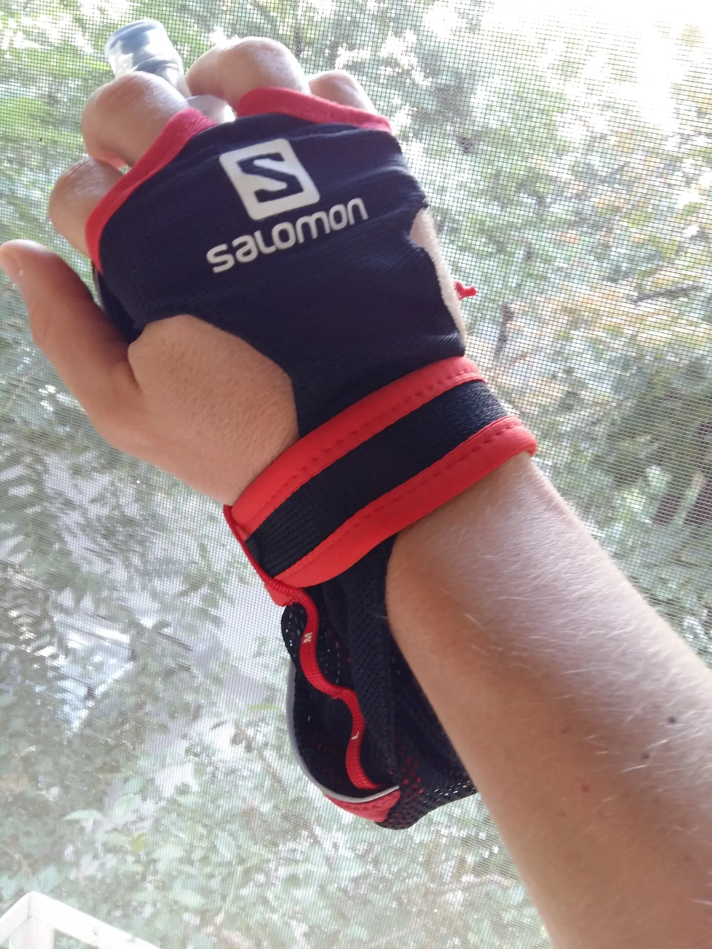 Se atasaza de mana ca o manusa, reducand tensiunea in articulatii survenita atunci cand alergam cu un bidon traditional si fara sa vrem ne surprindem dupa cativa kilometri ca il stangem atat de tare incat ne amorteste mana. Suportul are un buzunar lateral pentru geluri, chei, telefon, iar recipientul din interior este de tip softflask de 500ml, avand o greutate redusa fata de bidoanele traditionale. Il vad foarte bun pentru antenamente si chiar curse montane dar si pentru antrenamentele regulate din oras, mai ales atunci cand temperaturile din termometre urca vertiginos si hidratarea nu trebuie deloc neglijata. Ideal ar fi folosirea unui suport atat pe mana dreapta cat si pe cea stanga pentru echilibru, insa m-am simtit foarte bine alergand doar cu unul.