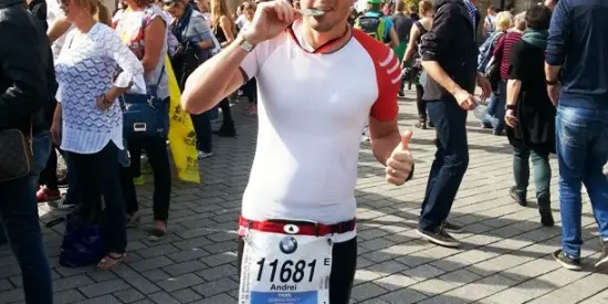 Aveam o promisiune de indeplinit fata de un bun prieten, Calin, care dupa ce se pregatise tot anul pentru acest concurs, in urma cu o saptamana, a fost accidentat destul de grav de o masina in timp ce se deplasa cu bicicleta la servici. I-am promis ca voi face aceasta cursa cu gandul la el si mare mi-a fost bucuria cand l-am vazut pe marginea traseului de bicicleta strigand “Hai Andreeeei! Dai bataie! Lasa, ca recuperezi la alergare!”. Venise din Bucuresti special sa fie alaturi de mine si sa ma incurajeze. M-a impresionat gestul lui, drept pentru care am strans din dinti, m-am ridicat in sa si am inceput sa imping in pedale, incepand din nou numaratoarea turelor de bicicleta.